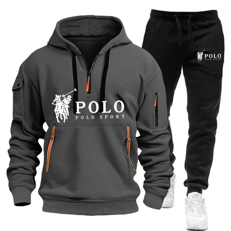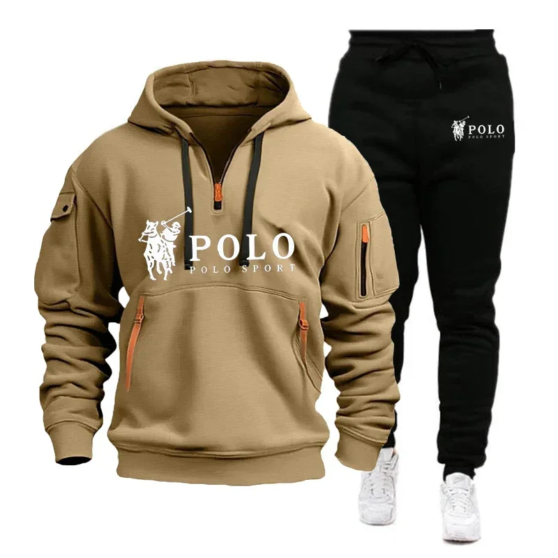 مجموعة رجالية جديدة غير رسمية لخريف وشتاء 2025، سترة رجالية دافئة مقاومة للرياح للمشي لمسافات طويلة في الهواء الطلق + بنطال رياضي غير رسمي