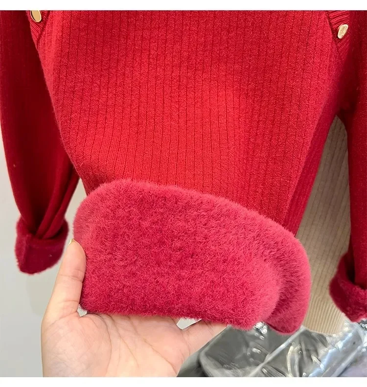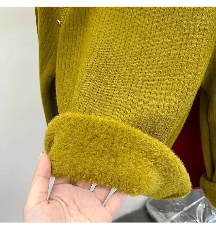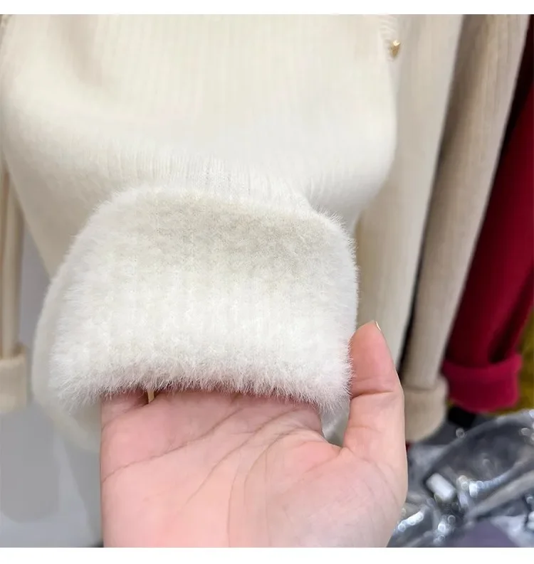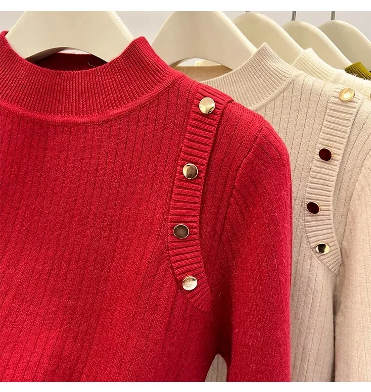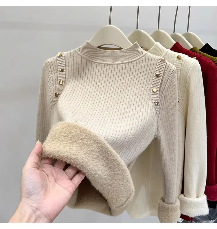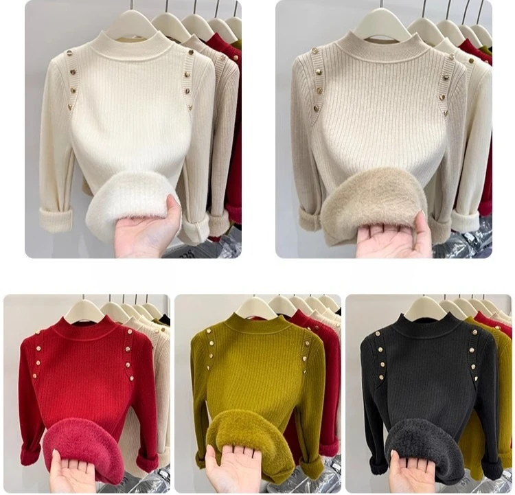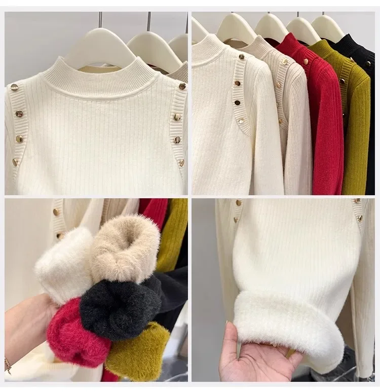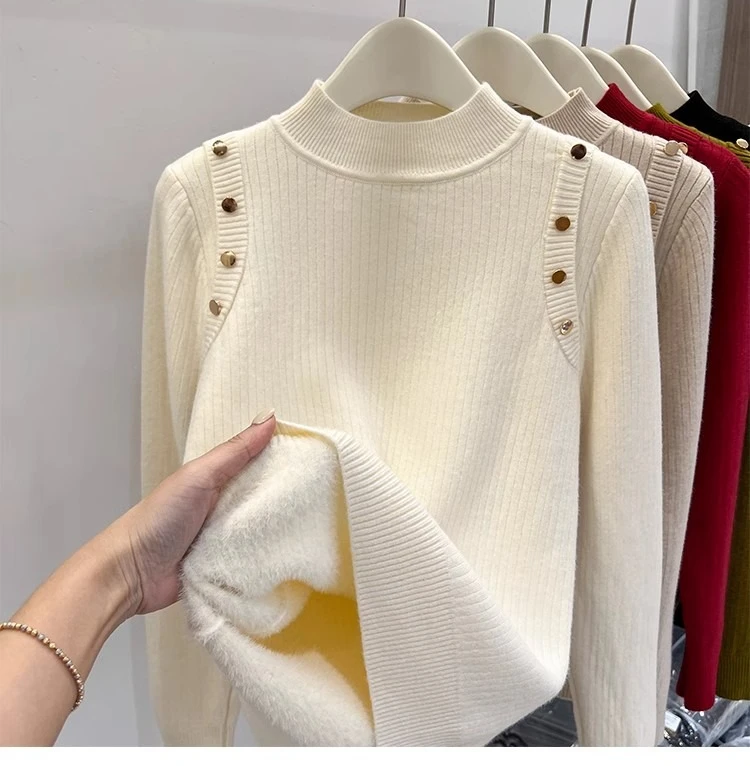 Autumn Winter Women Pullovers Button Turtleneck Knitted Sweater 2025 Basic Women's Wool Lined Thick Warm Sweaters
