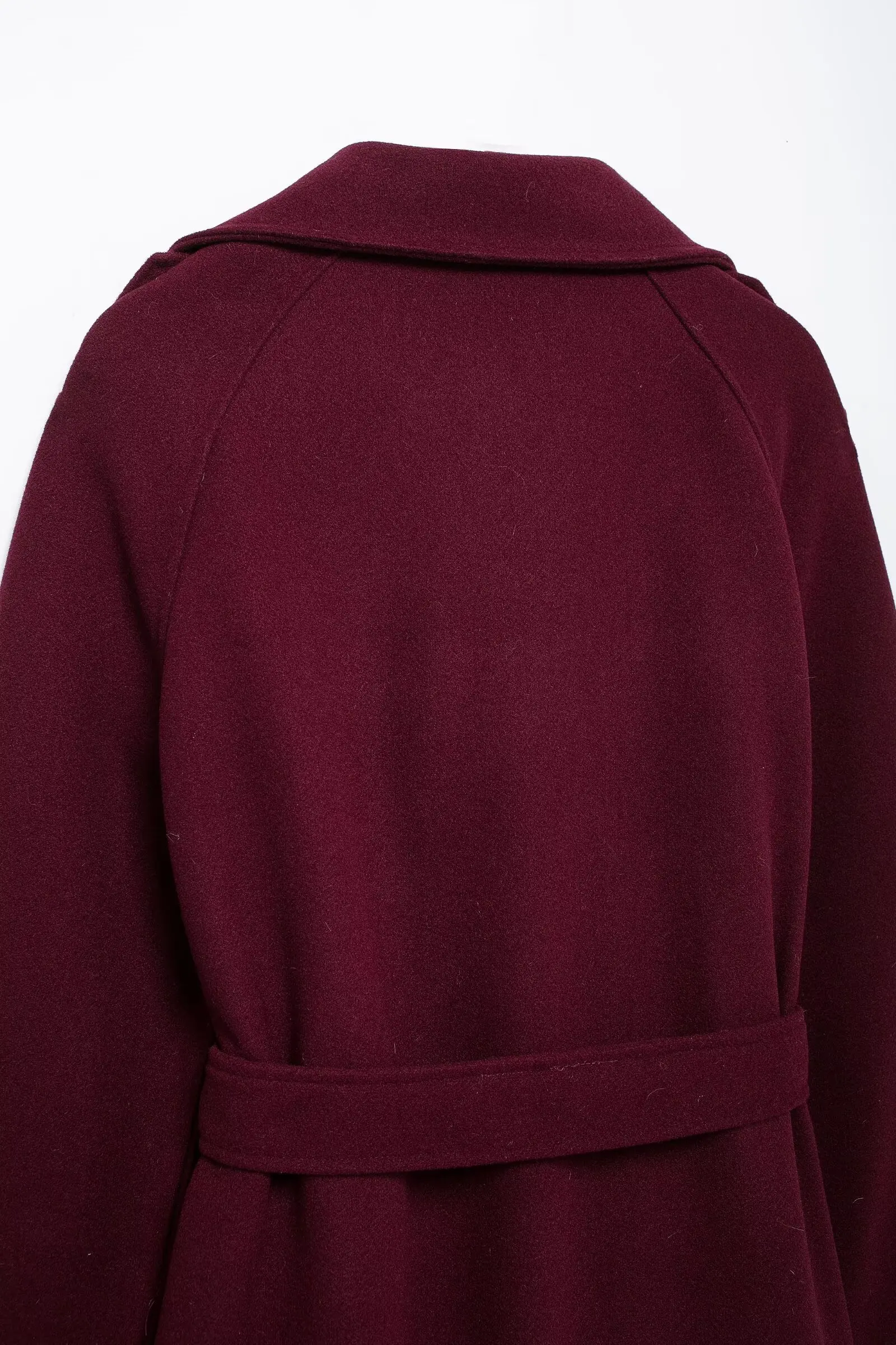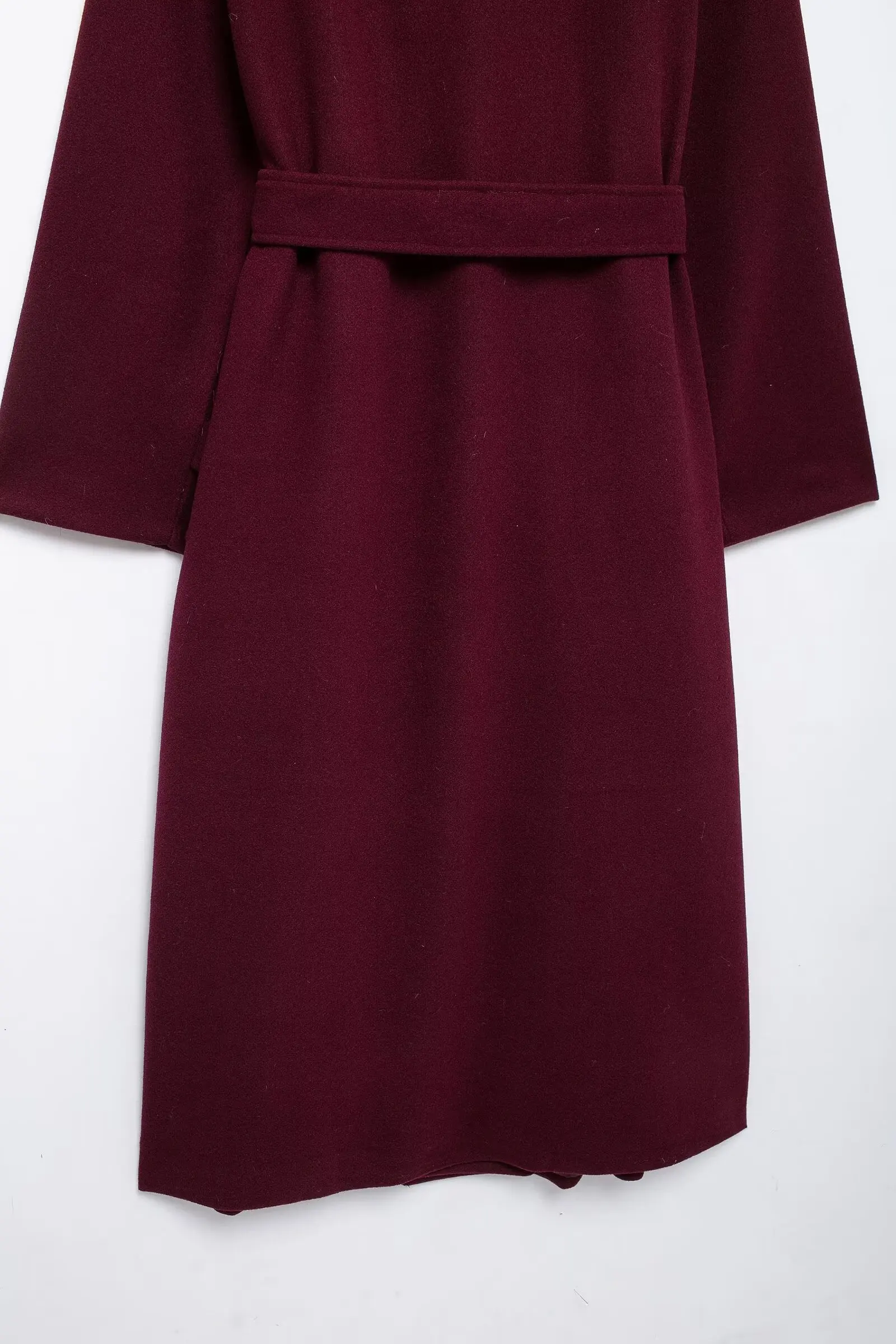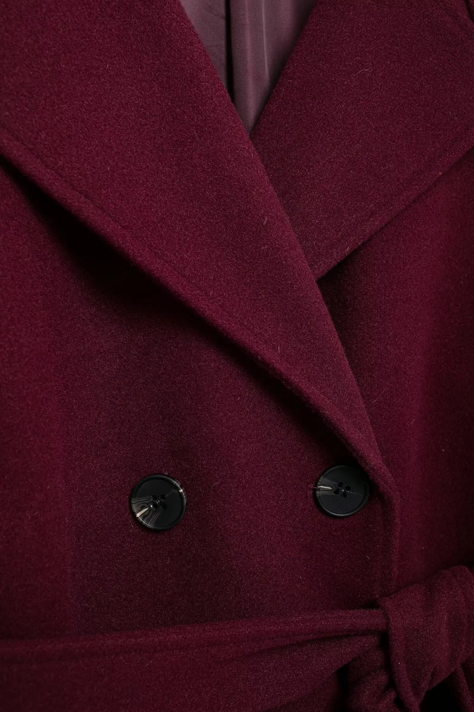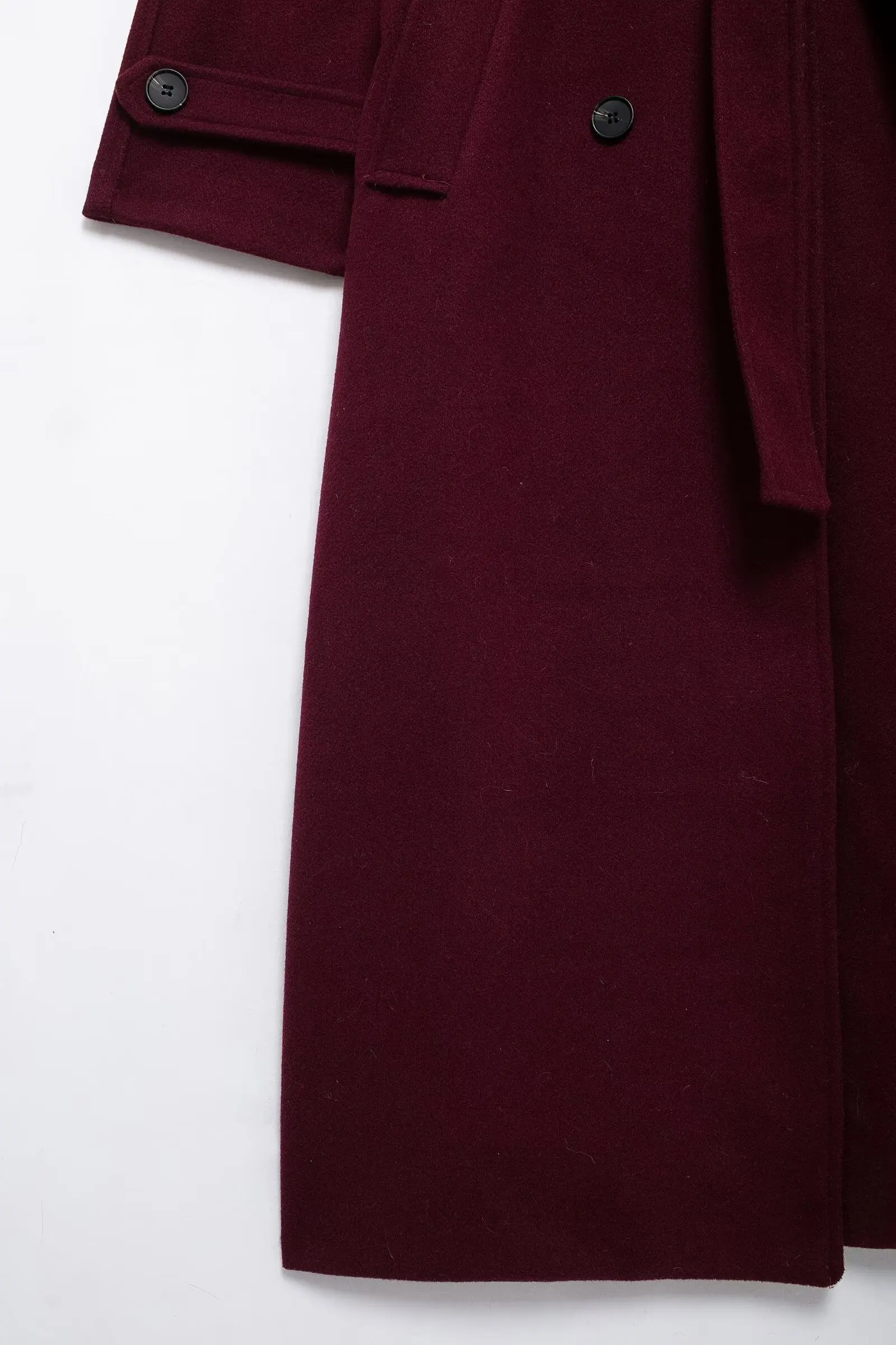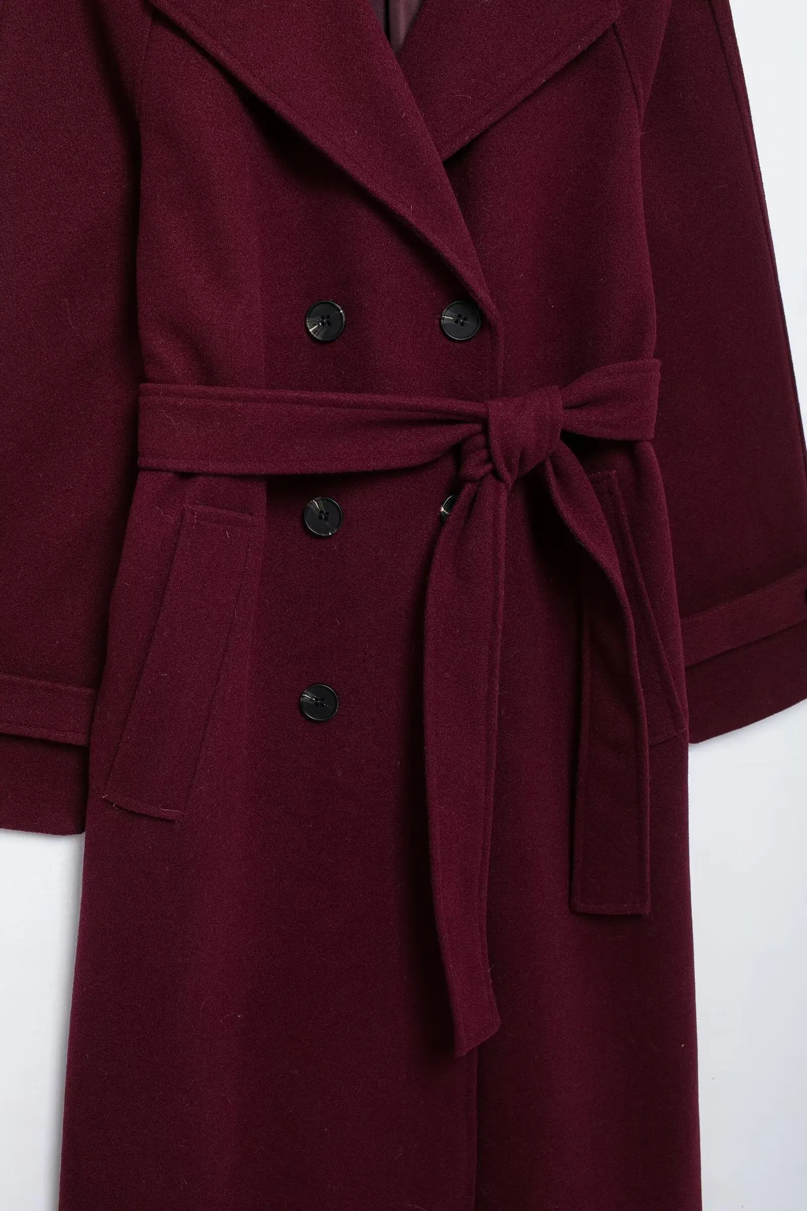 HH Burgundy Lapel Blend Women Elegant Maxi Coat Double Breasted Winter Jacket with Belt Elegant Women Coat