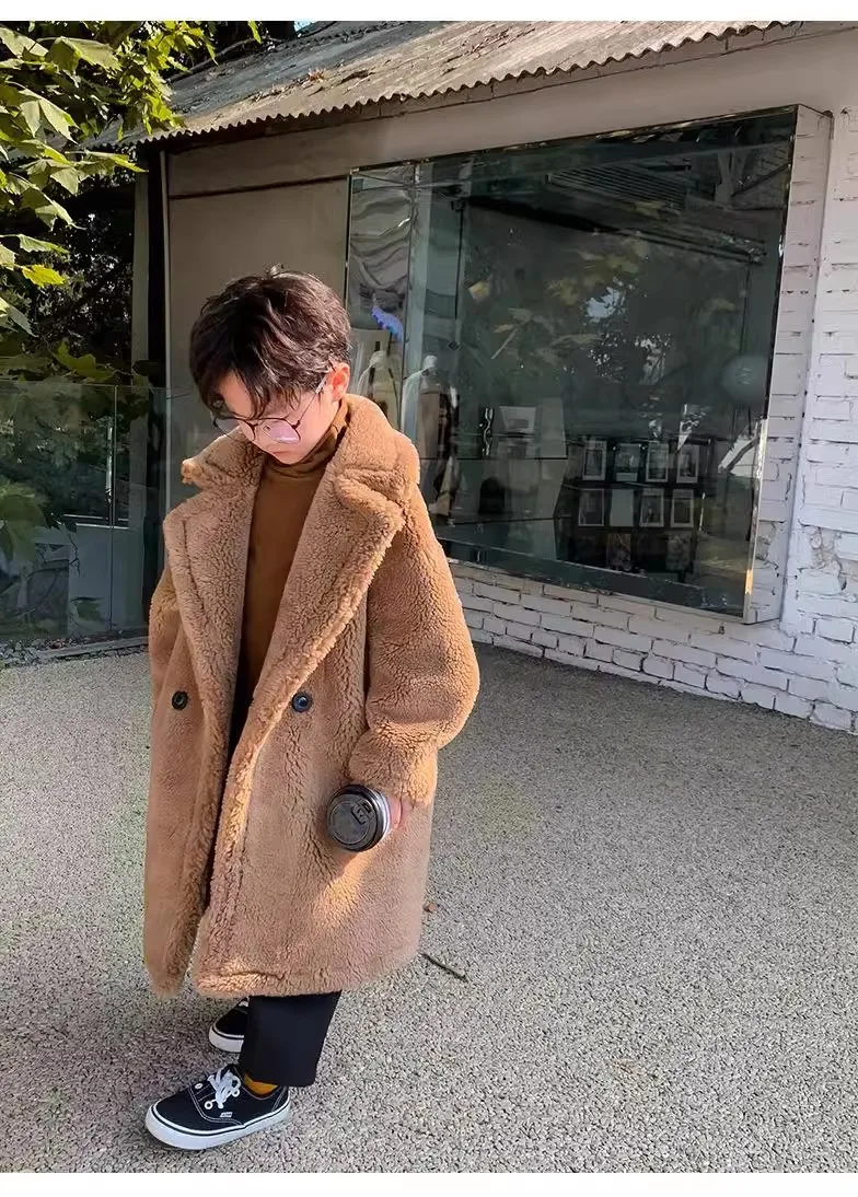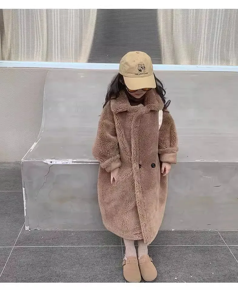 New Winter Children's Jacket Boys Girls Cotton Clothes Teddy Velvet Super Soft Long Thick Cotton Coat